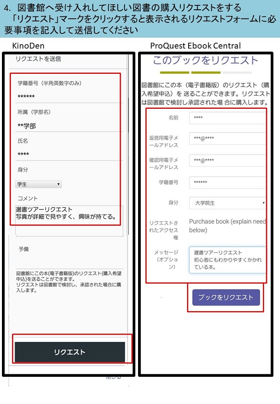 電子ブックのプラットフォームにある電子ブックの中から、試読していただき、必要事項を記入してリクエストしてください。