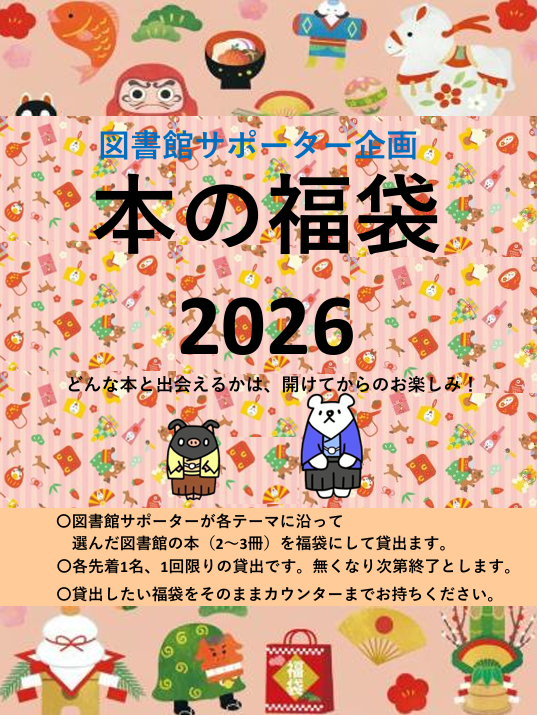 図書館サポーター企画「本の福袋2026」を展示開催中です。